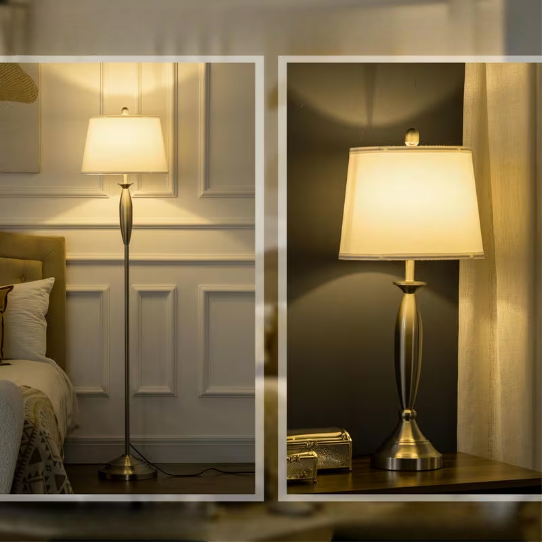 ViraLum sets differ in lamp quantity for various needs: Elara Glow – one table for small areas. Nova Pair – two tables for symmetry. Liora Blend – one floor and one table for combined lighting. Luma Pack includes two tables and one floor for medium rooms. Mode Pack – two each for large spaces. Nova Pack – three each for full setup.