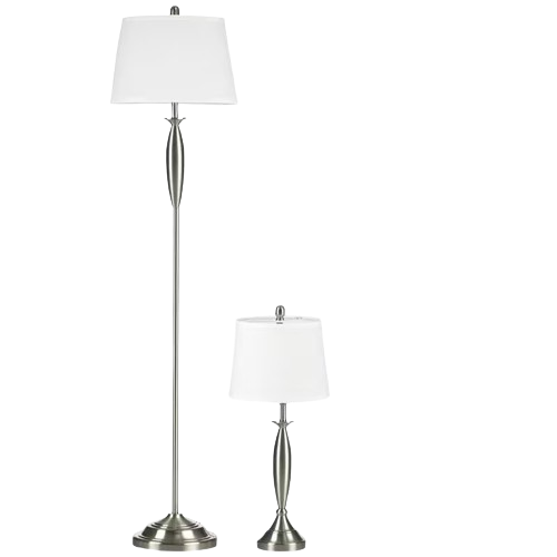 Modern design with clean lines and silver metal makes lamps versatile for any room.